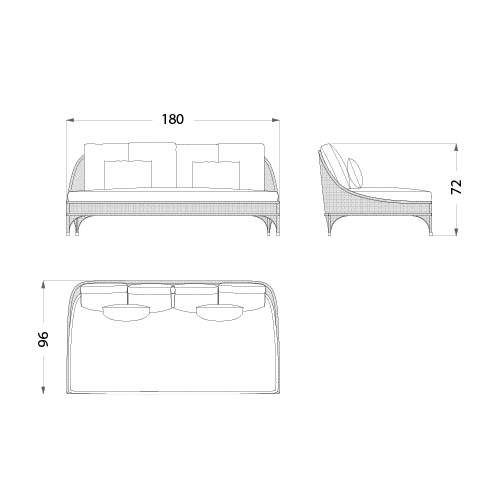 Szer. 180 × Gł. 96 × Wys. 72