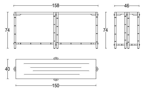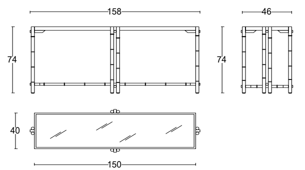 Szer. 158 × Gł. 46 × Wys. 74