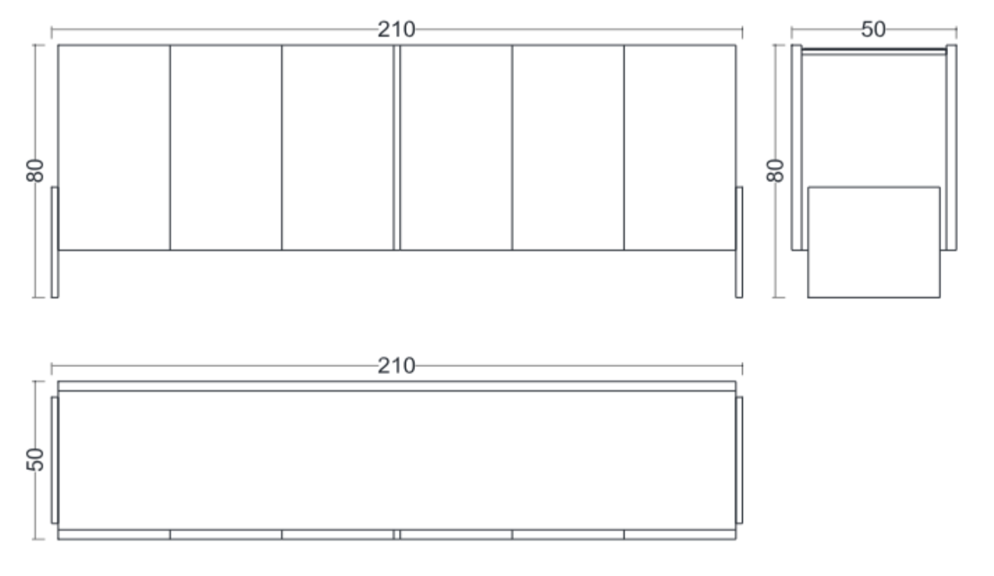 Szer. 210 × Gł. 50 × Wys. 80