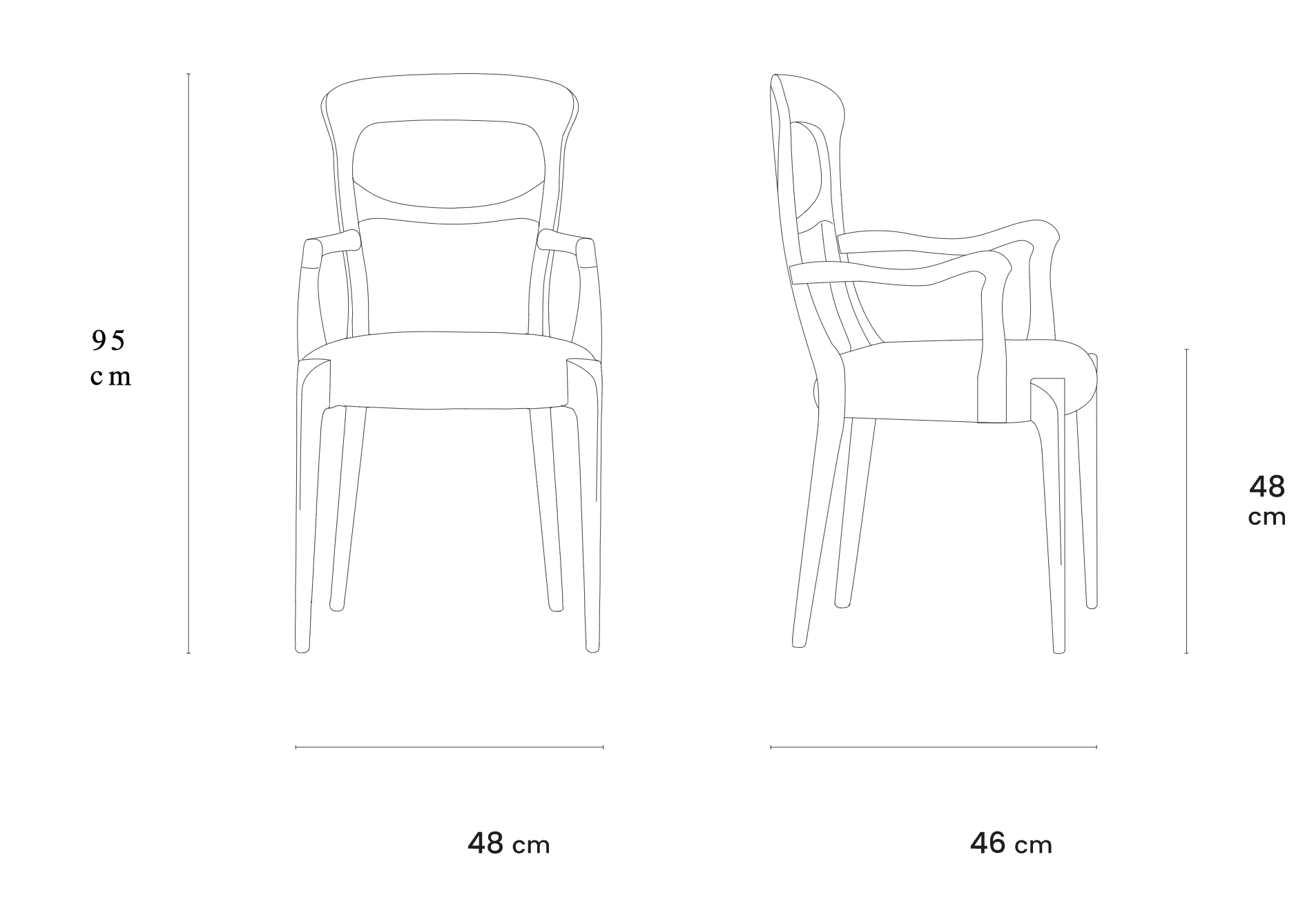 Naturalne krzesło Capotavola z litego orzecha włoskiego z podłokietnikami | Kolor: Velvet G075 129