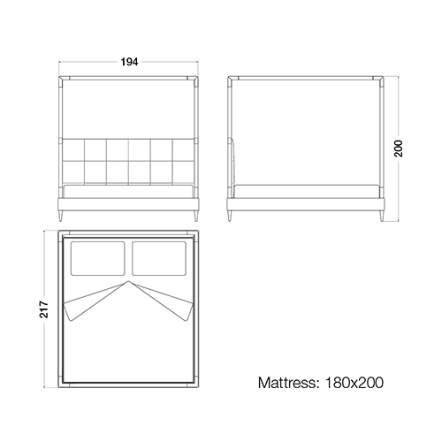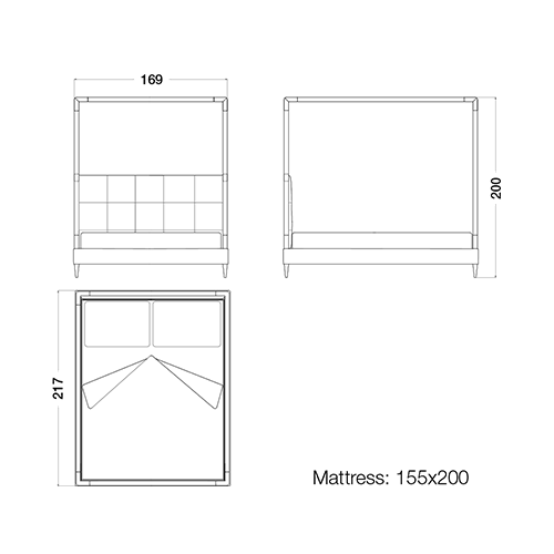 Nowoczesne włoskie łóżko z baldachimem | Rozmiar materaca: 155 × 200 cm