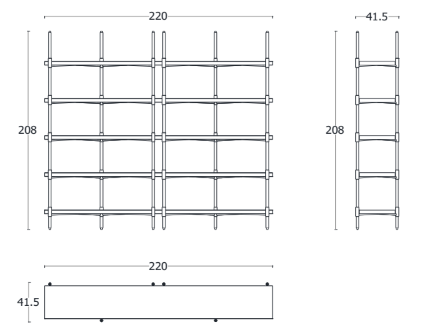 Szer. 220 × Gł. 42 × Wys. 208