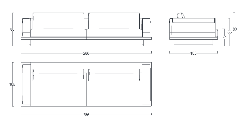 Szer. 286 × Gł. 105 × Wys. 80