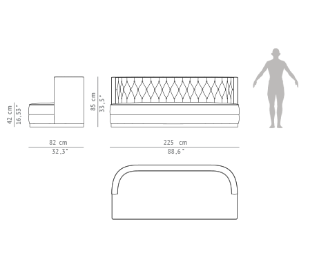 Szer. 225 × Gł. 82 × Wys. 85