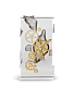 Sejf Tycoon Silver to śmiała deklaracja luksusu w nowoczesnej odsłonie. Inspirowany kultowym stylem Millionaire, wygląda jakby nosił ślady dramatycznych prób włamania – tym razem w wersji w pełni stalowej. Solidna, drewniana konstrukcja została opancerzona w polerowaną stal nierdzewną, dającą efekt lśniącego srebra. Powierzchnia pokryta jest charakterystycznymi wgłębieniami „po eksplozji”, a masywna, pozłacana rączka stanowi kontrastowy akcent. Sejf otwiera się za pomocą tajnego szyfru, a wewnątrz znajduje się wnętrze lakierowane na czarno i wyściełane aksamitem – z wieloma szufladami. Stylowy i bezpieczny – robi niezapomniane wrażenie.