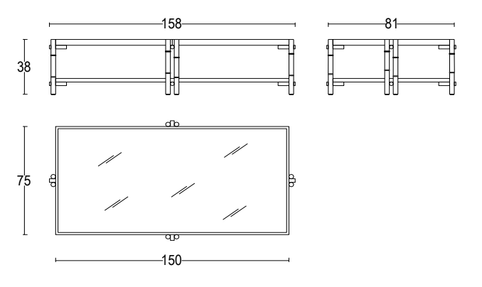 Szer. 158 × Gł. 81 × Wys. 38