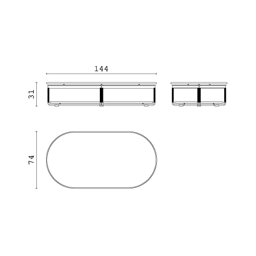 Szer. 144 × Gł. 74 × Wys. 31
