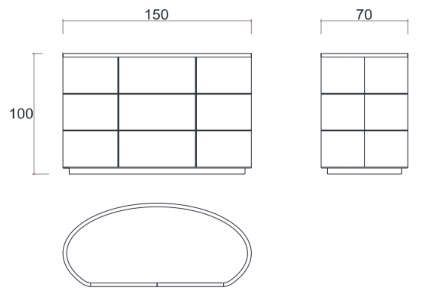 Szer. 150 × Gł. 70 × Wys. 100