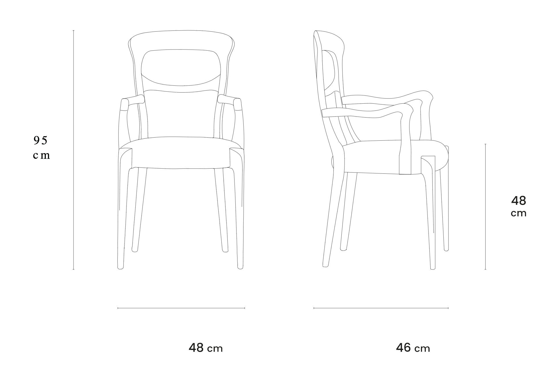 Szare krzesło Capotavola z litego orzecha włoskiego z podłokietnikami | Kolor: Velvet G075 129