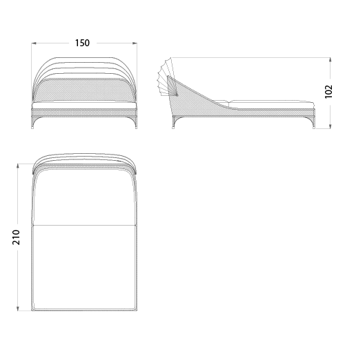 Szer. 150 × Gł. 210 × Wys. 76 / 102
