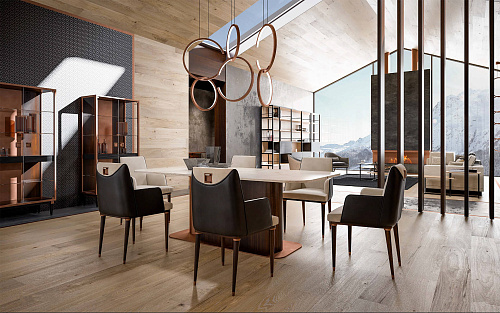 Witryna cedrowa ze szklanymi drzwiczkami i metalowymi akcentami